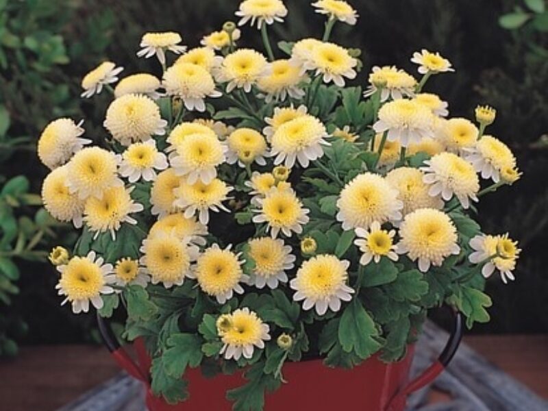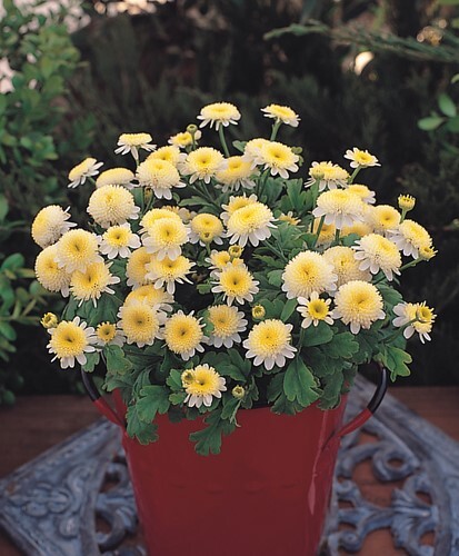 Ideal for borders, landscaping, and pots, Santana Yellow is a day-length neutral Tanacetum boasting soft yellow flowers that transition from darker centers to brighter tips.