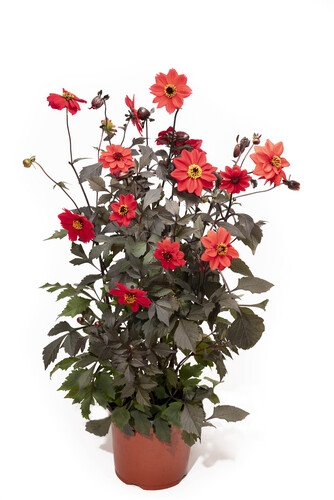 Black Forest Ruby is an award-winning, seed-raised dahlia with single to double blooms in radiant shades of red, from scarlet to deep wine. These striking flowers contrast beautifully with dark pinnata foliage, creating exceptional visual appeal. Thriving in sunny beds and containers, it flowers continuously from summer until the first frost. With outstanding performance and recognised excellence, it’s a top choice for growers, retailers and gardening enthusiasts alike.