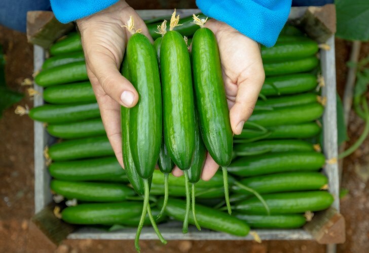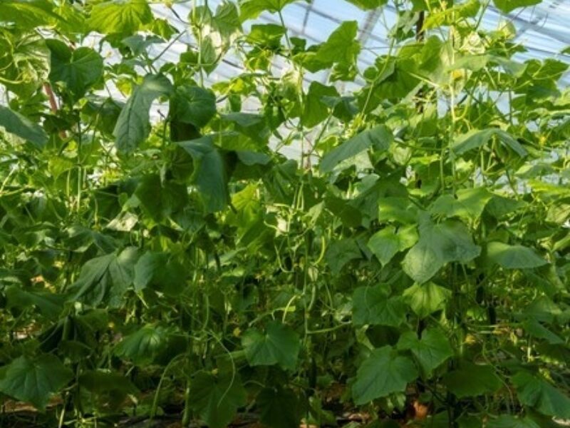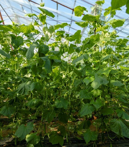 TCU-176 grows with medium-strong plant vigour and moderate lateral development, producing 1–2 fruits per node. It remains productive throughout the season with fast recovery, making it especially suitable for late autumn and winter production. The plant has an open habit with small, dark green leaves, allowing for easy harvesting. The fruits have smooth skin and an attractive green colour.