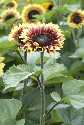 [NW EU 110 day type, spring; 60 day type summer] Marley is as a remarkable addition to the Helianthus market, showing a bi-colour blend of mellow yellow and reddish-purple petals. Additionally, with a long vase life and pollen-free flowers, Marley is a florist favourite. Flourishing in both spring and summer cultivation, it shows a good plant height and genetic colour variation, resulting in playful shade differences. Compared to its counterpart Ziggy, Marley presents a softer yellow hue.