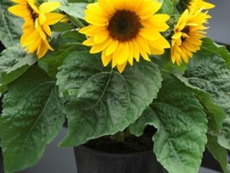 Smiley, the pot-type sunflower F1 hybrid Helianthus series from Takii, stands out for its compact growth, speedy cultivation, and high uniformity. This variety boasts vibrant yellow, pollen-less flowers with wide petals. Smiley consistently flowers within 55 to 60 days in conditions warmer than 15℃ (60°F), offering year-round flowering potential.