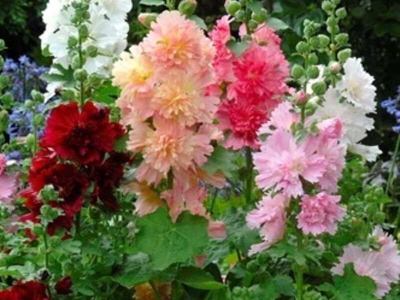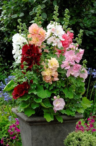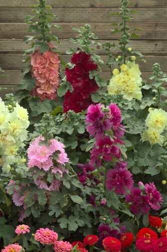 Spring Celebrities is a dwarf hollyhock series known for its large, double to semi-double flowers and excellent basal branching. It is ideal for large containers, beds and borders. Under favourable conditions, it blooms for up to three months in its first year, from May to frost. This uniform series offers consistent earliness, height, habit and flower form, ensuring a vibrant, long-lasting garden display.