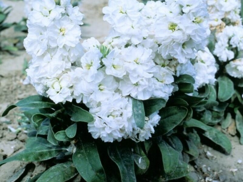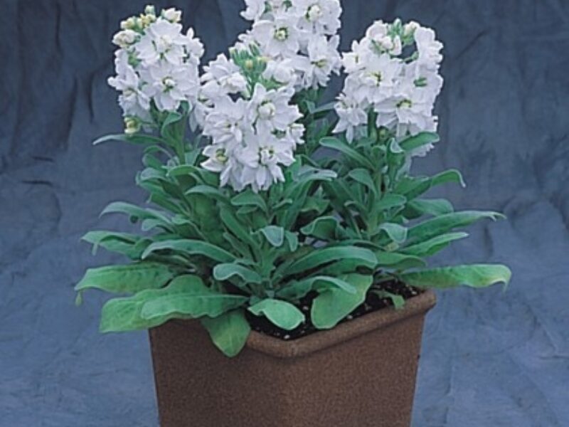 Cinderella, a dwarf matthiola series, enchants with its early and continuous flowering across many vivid colours. Cinderella is selectable for doubleness: after exposure to cold temperatures below 8°C (46°F) under light, seedlings can be easily distinguished. Doubles exhibit pale green cotyledons, while singles show dark green cotyledons.