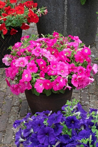 Trilogy, a multiflora, mounding Petunia series, benefits growers, retailers, and consumers alike. Requiring less PGR, it sustains longer retail display life and minimal garden care. Distinguished by its unique dome shape, compact spread, and abundant blooms, Trilogy ensures uniformity across all colours. Less sensitive to day length than other Petunias, it's an ideal choice for lasting, low-maintenance beauty in floral displays.