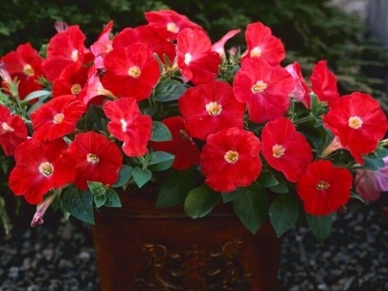 Trilogy, a multiflora, mounding Petunia series, benefits growers, retailers, and consumers alike. Requiring less PGR, it sustains longer retail display life and minimal garden care. Distinguished by its unique dome shape, compact spread, and abundant blooms, Trilogy ensures uniformity across all colours. Less sensitive to day length than other Petunias, it's an ideal choice for lasting, low-maintenance beauty in floral displays.