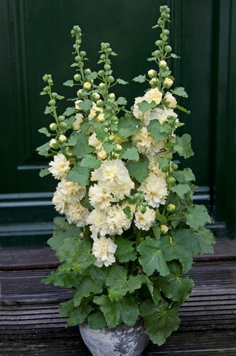 Spring Celebrities is a dwarf hollyhock series known for its large, double to semi-double flowers and excellent basal branching. It is ideal for large containers, beds and borders. Under favourable conditions, it blooms for up to three months in its first year, from May to frost. This uniform series offers consistent earliness, height, habit and flower form, ensuring a vibrant, long-lasting garden display.