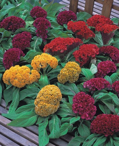 The Armor series, a cristata type Celosia, features attractive large flower heads in bright colours, perched atop robust plants with lush foliage. Its distinctive "brain-like" flowers captivate with their unique form, colour, and texture. Excelling in heat, this series ensures a vibrant display even in the warmest conditions.