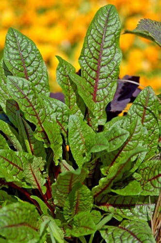 long green leaves with brilliant red veining, superb contrast, for containers and gardens